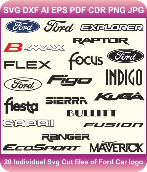 Each logo is provided in SVG format, making it easy to use with various cutting machines and design software. Whether you are a Ford enthusiast, a designer or just looking to add a touch of Ford style to your projects, this pack has everything you need. Ideal for creating personalized gifts, custom apparel and more.